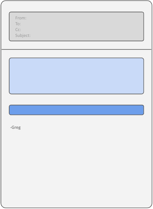 Another thing I often hear is “Customers don’t really read.” What they mean is that your product can have all kinds of explanatory text, but customers will generally not take the time. They just want to get something done by finding what to click and clicking it. Same is true for email. This is why I structure almost all my email to one of those two shapes… visually.