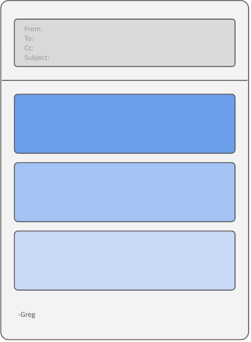 Even when writing about good or neutral news, people may structure their email with a “Context, Problem, Options, Details, Conclusion” format. Perhaps this is because it’s a common format to technical articles and design documents. However, the things you want to convey in email have a different nature. Someone wanting to dive into the details of a technical design will dive into those details. Someone simply getting an email will be much less engaged.